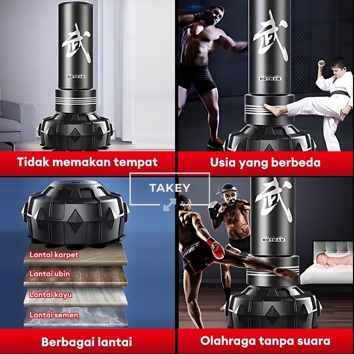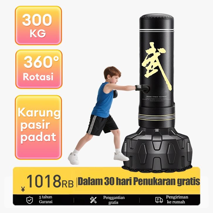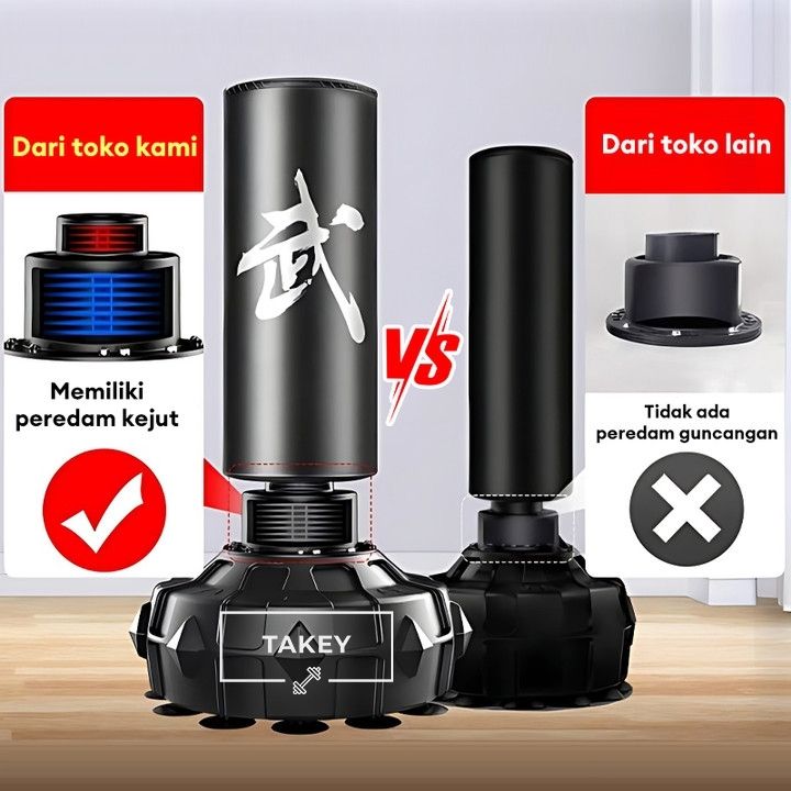 Samsak Tinju Bela Diri Vertical Punching Bag Berdiri Freestanding Punching Bag Boxing Muay Thai Red Black 170CM