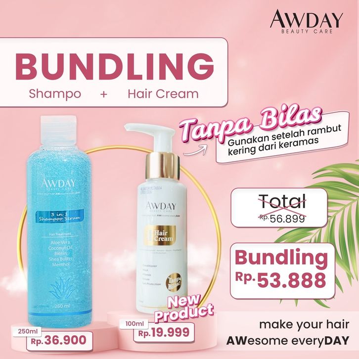 PAKET MURAH Awday Shampoo 3 in 1 dPAKET MURAH Awday Shampoo 3 in 1 dan an Hair Cream Cepat Menumbuhkan Rambut BPOM HALAL