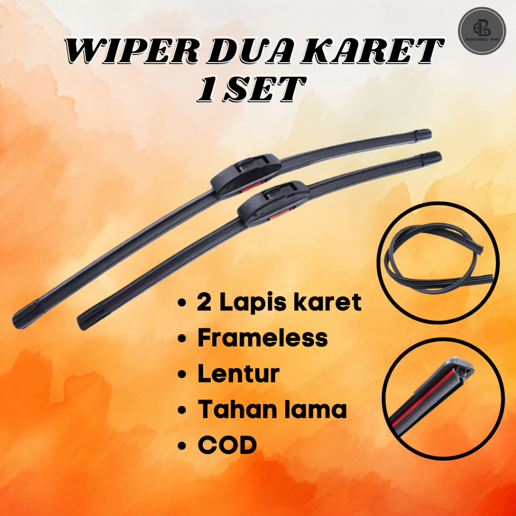 WIPER DUAL KARET SEPASANG 1SET WIPER KARET DOUBLE FRAMELLESS 2PCS UNIVERSAL