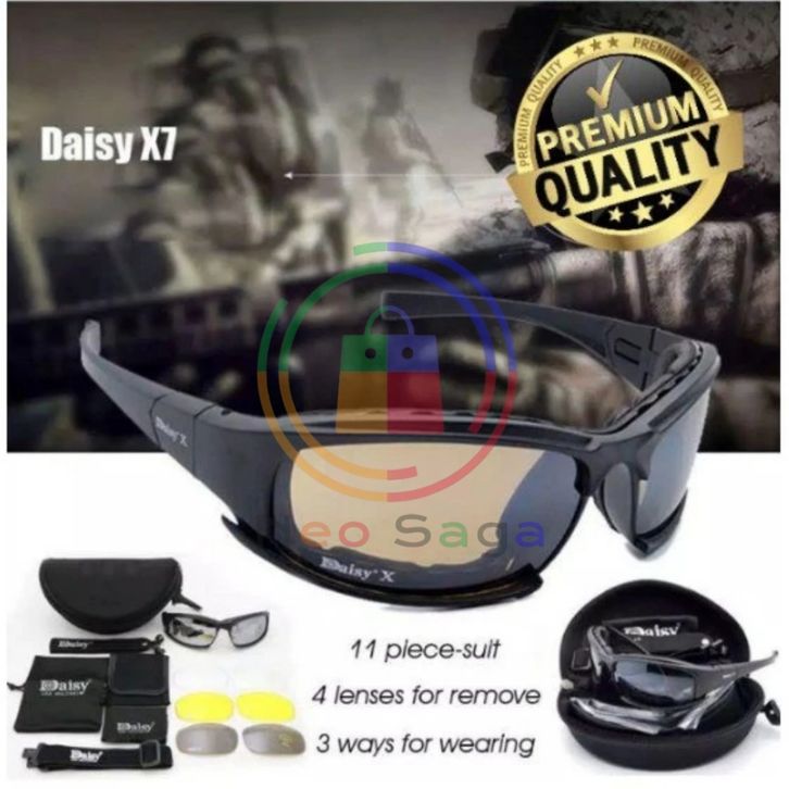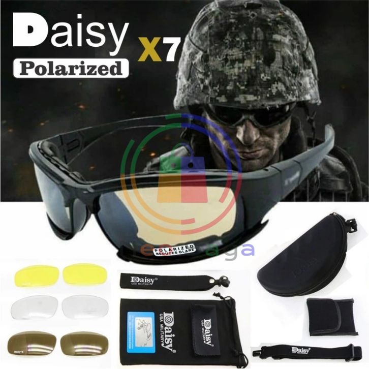 Tactical Daisy x7 Anti UV 4 lensa Set Kacamata Sunglasses Police Military