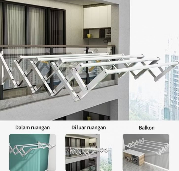 Jemuran Baju Tempel Dinding Jemuran pakaian Lipat Stainless