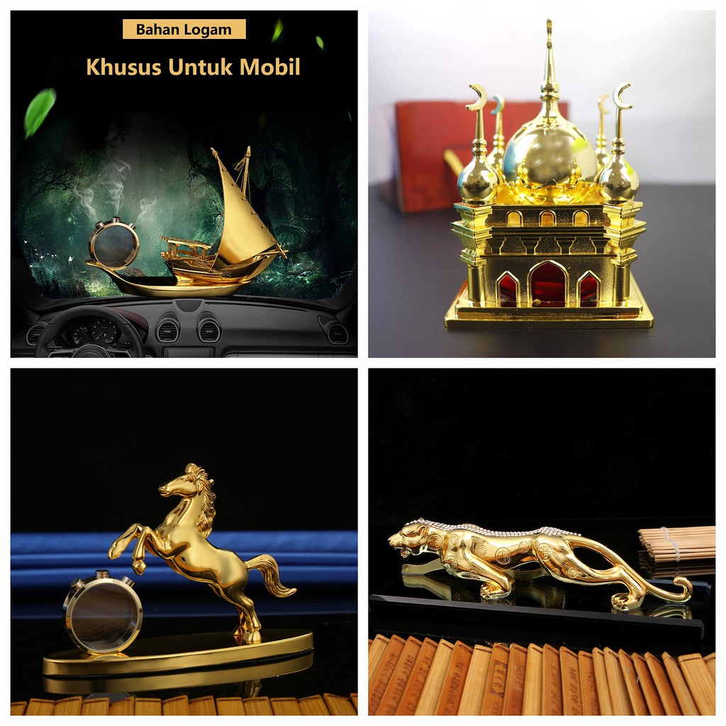 Tempat Pengharum Mobil Bentuk Masjid Gold Mewah Bisa Isi Ulang