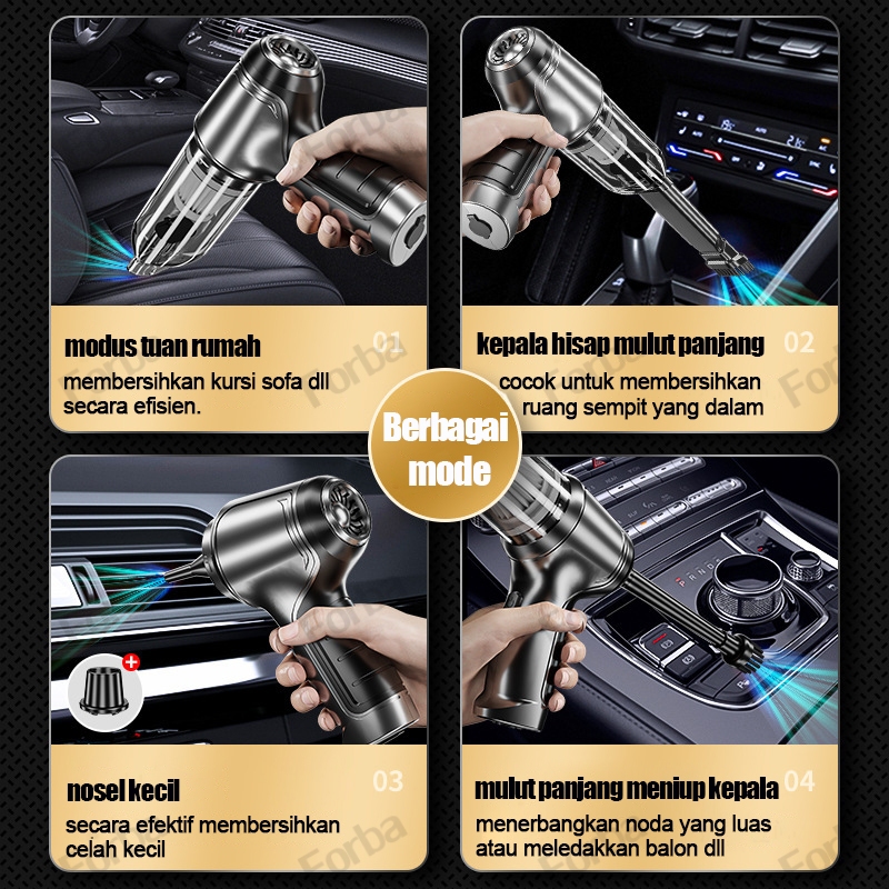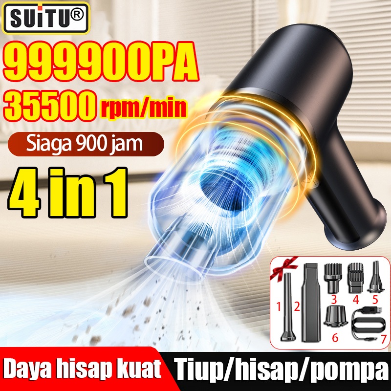 ST Vacum Cleaner Mobil Mini 4in1 98000Pa 6 jenis mulut Kosongkan sampah dalam 1 deti hisap Hisap/Tiup/Pompa