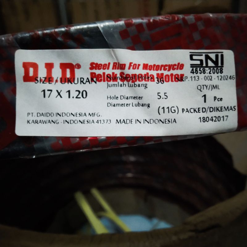Velg 120-17 DID Warna HITAM 36Hole