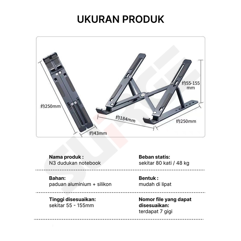 SUIRGE Lipat Laptop Holder Notebook Adjustable Anti Slip Stand Portable