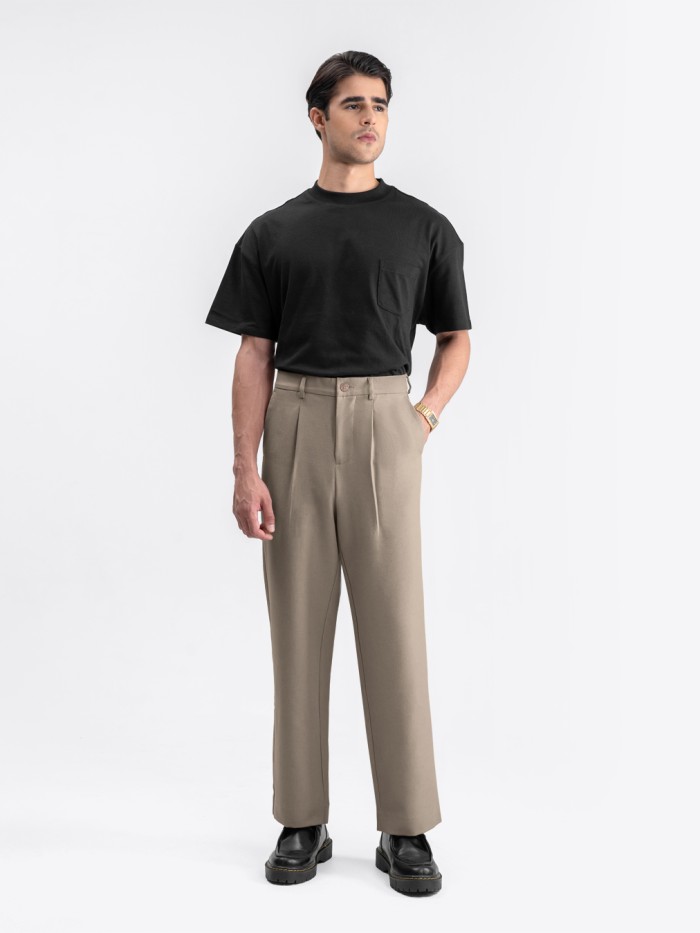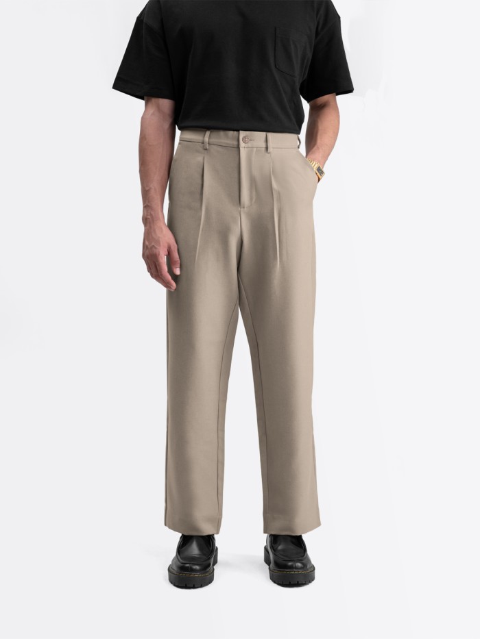 LIVEHAF - ROOMY WIDE PANTS KHAKY - M