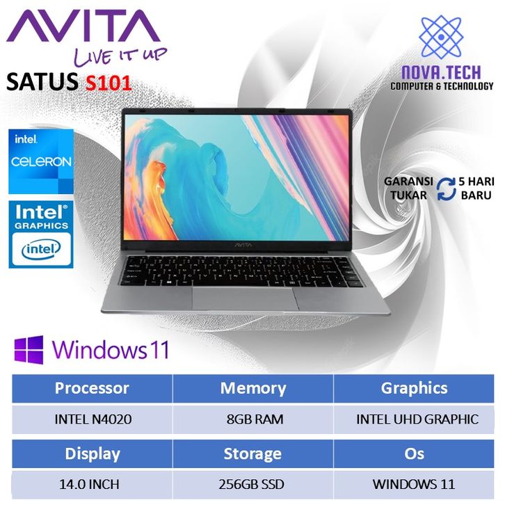 Laptop murah Avita Satus S101 Intel Celeron N4020 Ram 8gb 256 Ssd Windows 11 Layar 14 inch