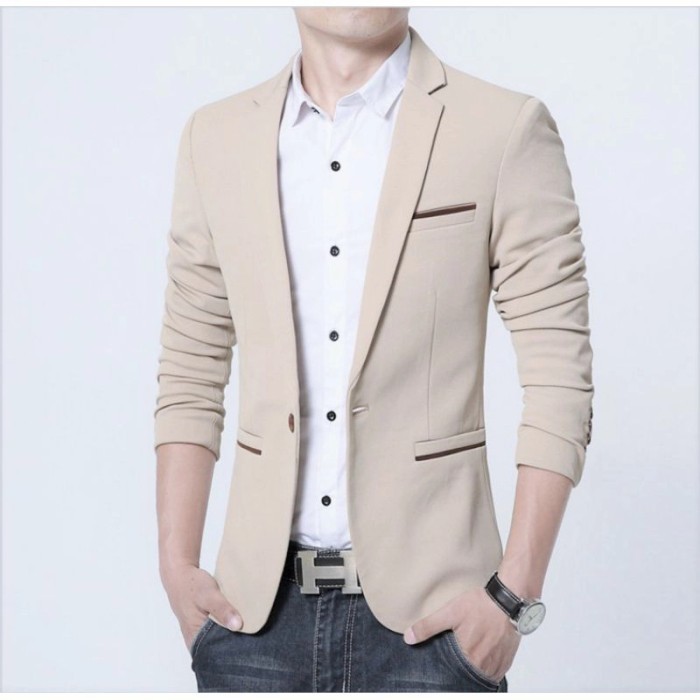 DAV JAS PRIA SLIM FIT CASUAL / BLAZER PRIA KOREAN STYLE - CREAM, XS - ROMPI DEWASA, M