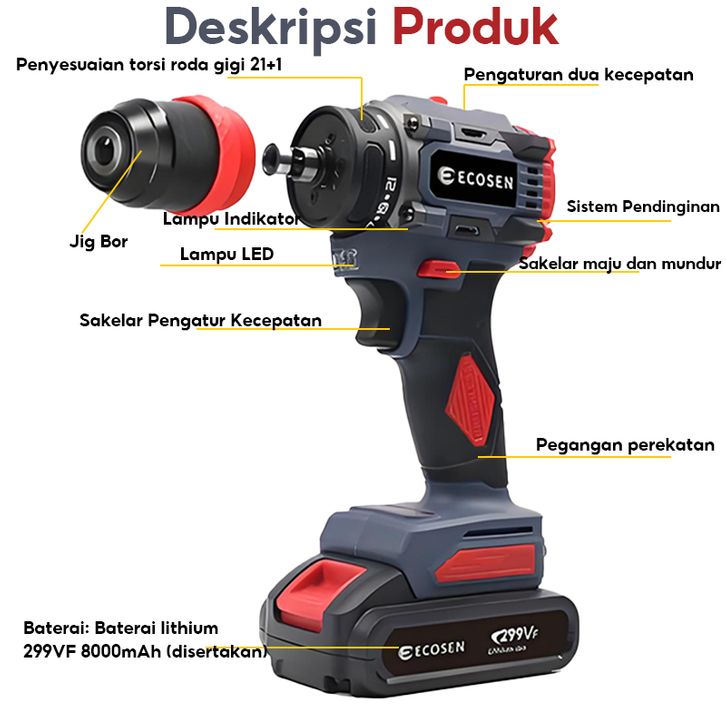 Mesin Bor Baterai Tangan 299VF Dengan 2 Baterai Cordless Drill Battery /Bor listrik