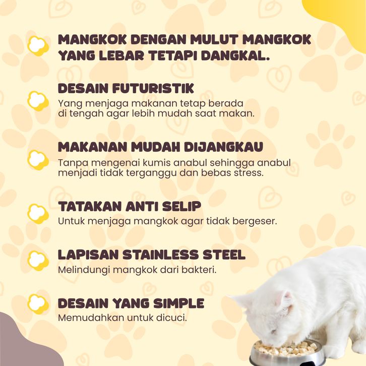 Mangkok Makan Stress Free Bowl Desain Dangkal Anti Selip Stainless Steel CATPOW