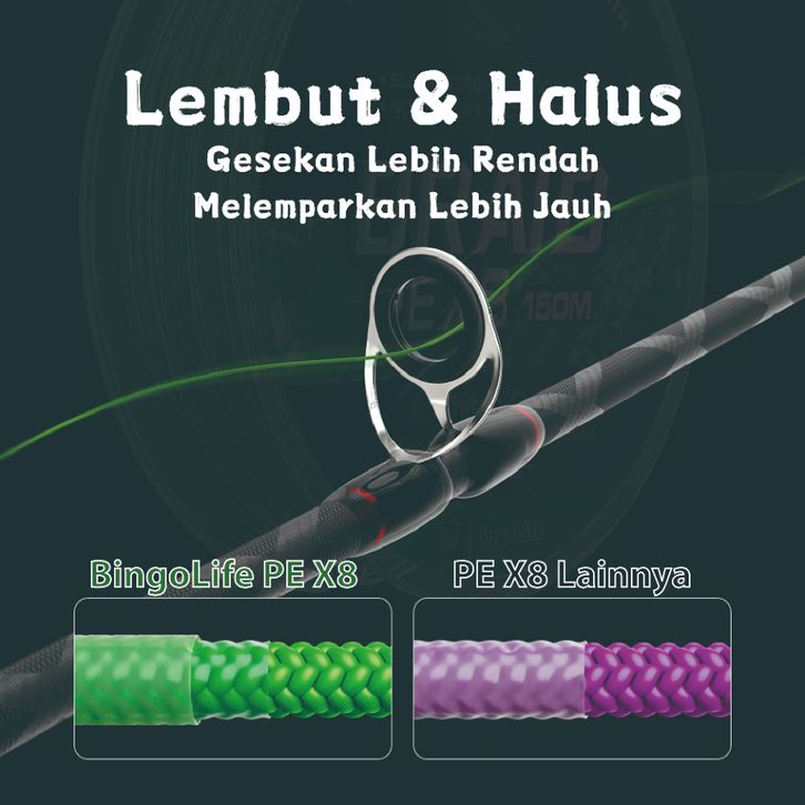 Benang Pancing Dikepang 150m Lure Fishing Tali Pancing PE X8 Hijau Mudah Tenggelam Halus Memancing Karper Senar Pancing