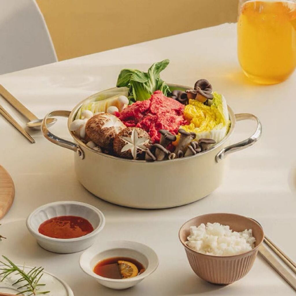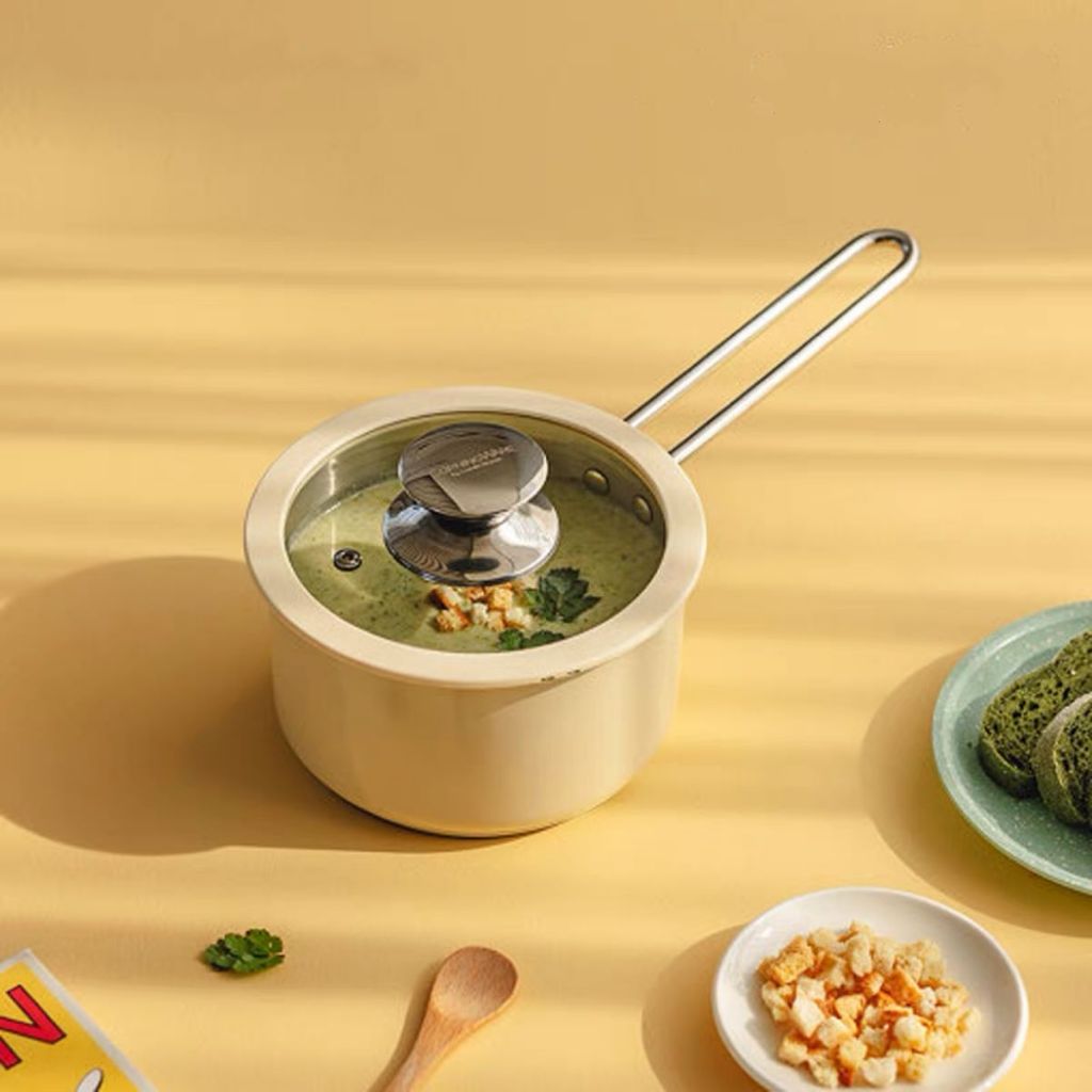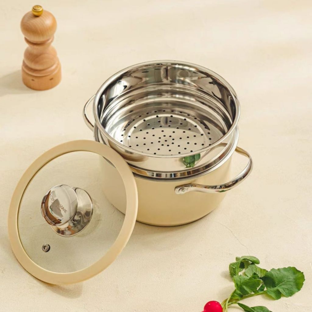 99KHOME Premium Saucepan Stockpot Cookware Set Steamer Stainless Steel Panci Kukus Anti Lengket Dengan Tutup Kaca Cream