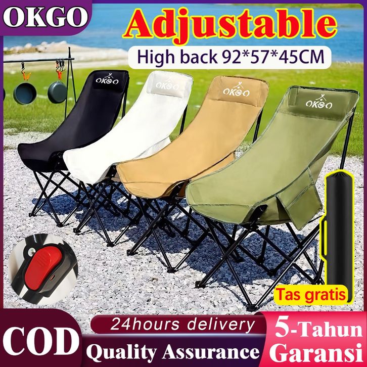 OKGO Kursi Lipat Camping Kursi Malas Camping Kursi Lipat Pancing Camping Fishing Chair High Back Folding Chair