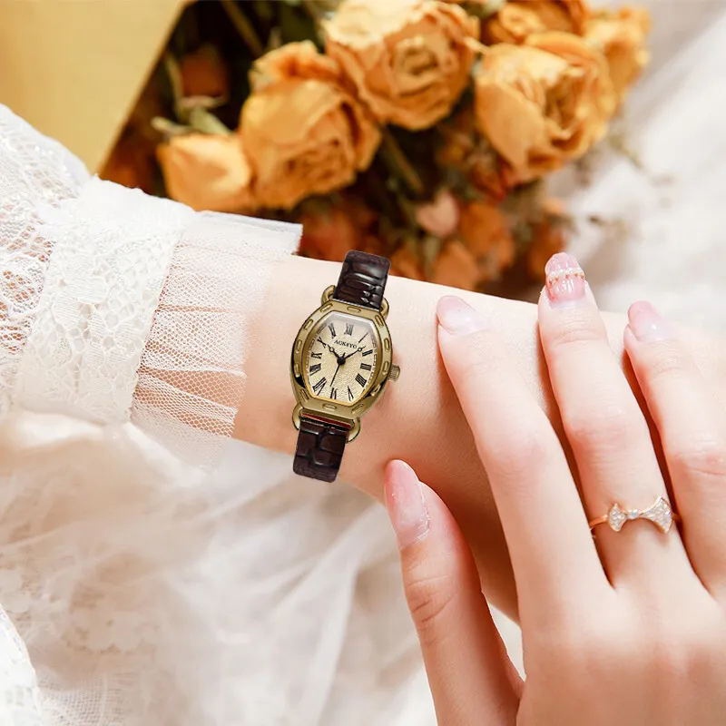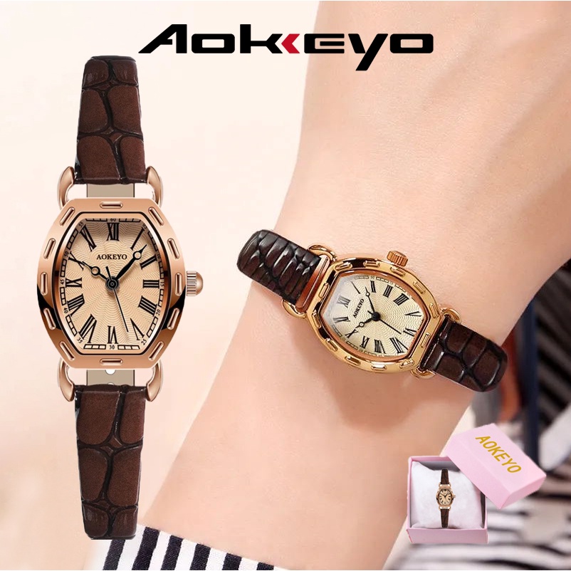 AOKEYO Jam Tangan Wanita S053 Klasik Mode Display Kuarsa Santai Jam Tali Kulit Tahan Air (Free BOX+Kartu Garansi)