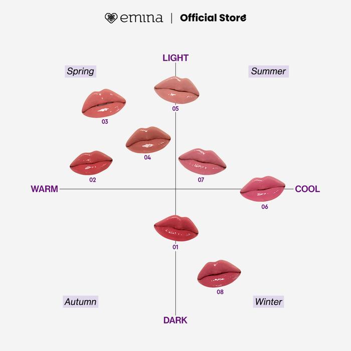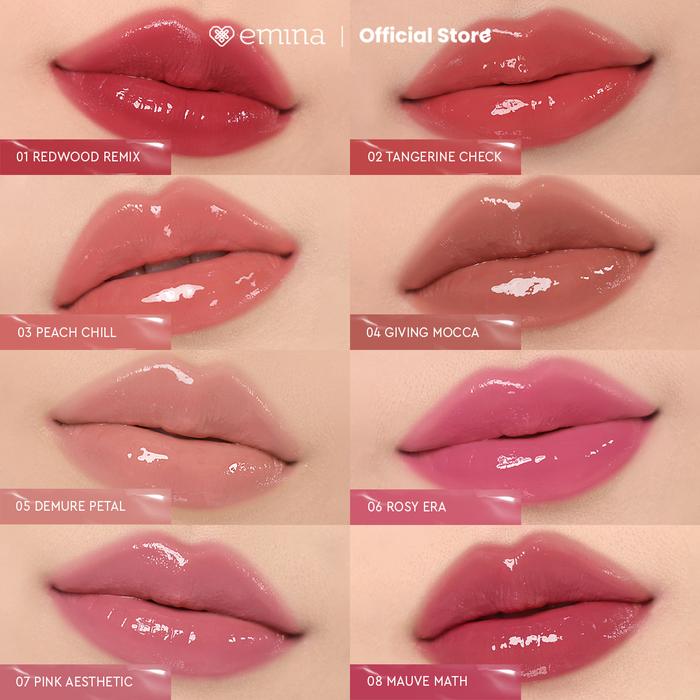 01 Redwood , 02 Tangerine , 03 Peach Chill, 04 Giving Mocca , 05 Demure Petal, 06 Rosy Era , 07 Pink Aesthetic , 08 Mauve Math