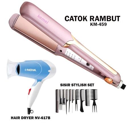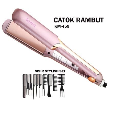 Alat Catokan Rambut Lurus Curly Keriting Kemei 2in1 1 Set Hair Straightener Cepat Panas dan Elegan