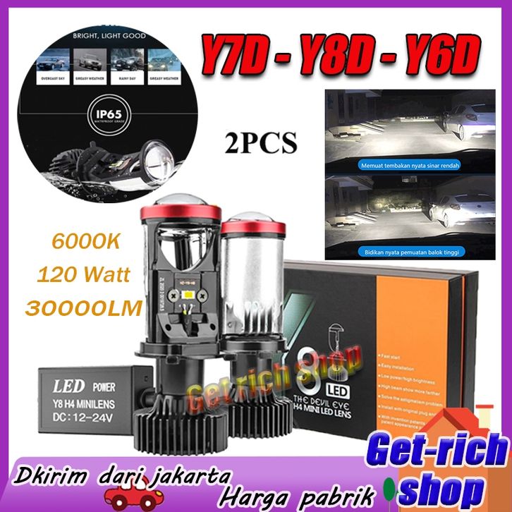 Sepasang Lampu Y7D lampu led mobil Y6D Y8D mini projie h4 120 watt 30000lm Super bright h4 mini projector lens Lensa mo