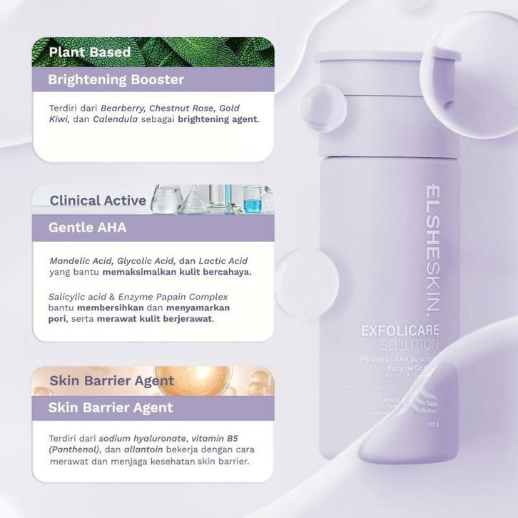 Elsheskin Exfolicare Solution 100 g - TonElshesker Eksfoliasi Wajah Glowing, Cerah & Halus Ramah Pemula & Kulit Sensitif