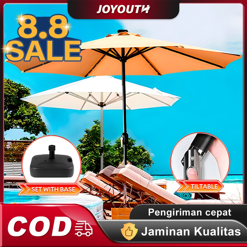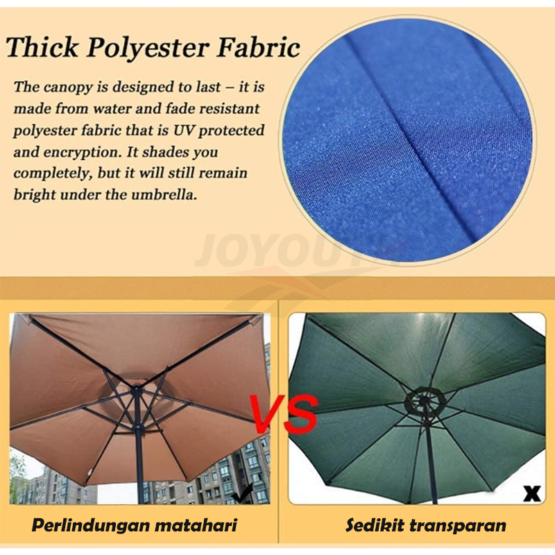 ORIGINAL - JOY PAYUNG TENDA 2.7M TAMAN HOTEL PATIO PARASOL PAYUNG PANTAI BAZAR OUTDOOR UMBRELLA UV PERLINDUNGAN KAIN