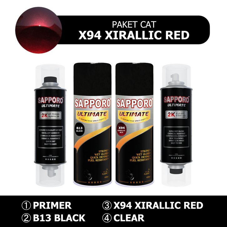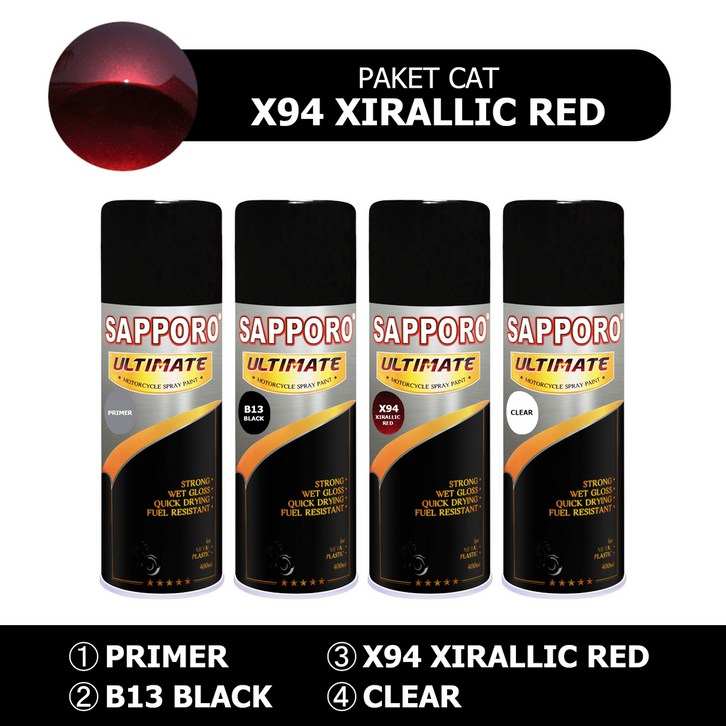 Pilok Pilox Paket Cat X94 Xirallic Red / SAPPORO ULTIMATE / Cat Semprot