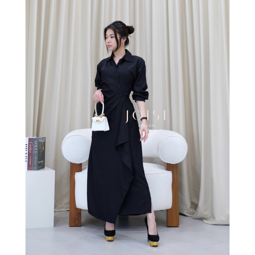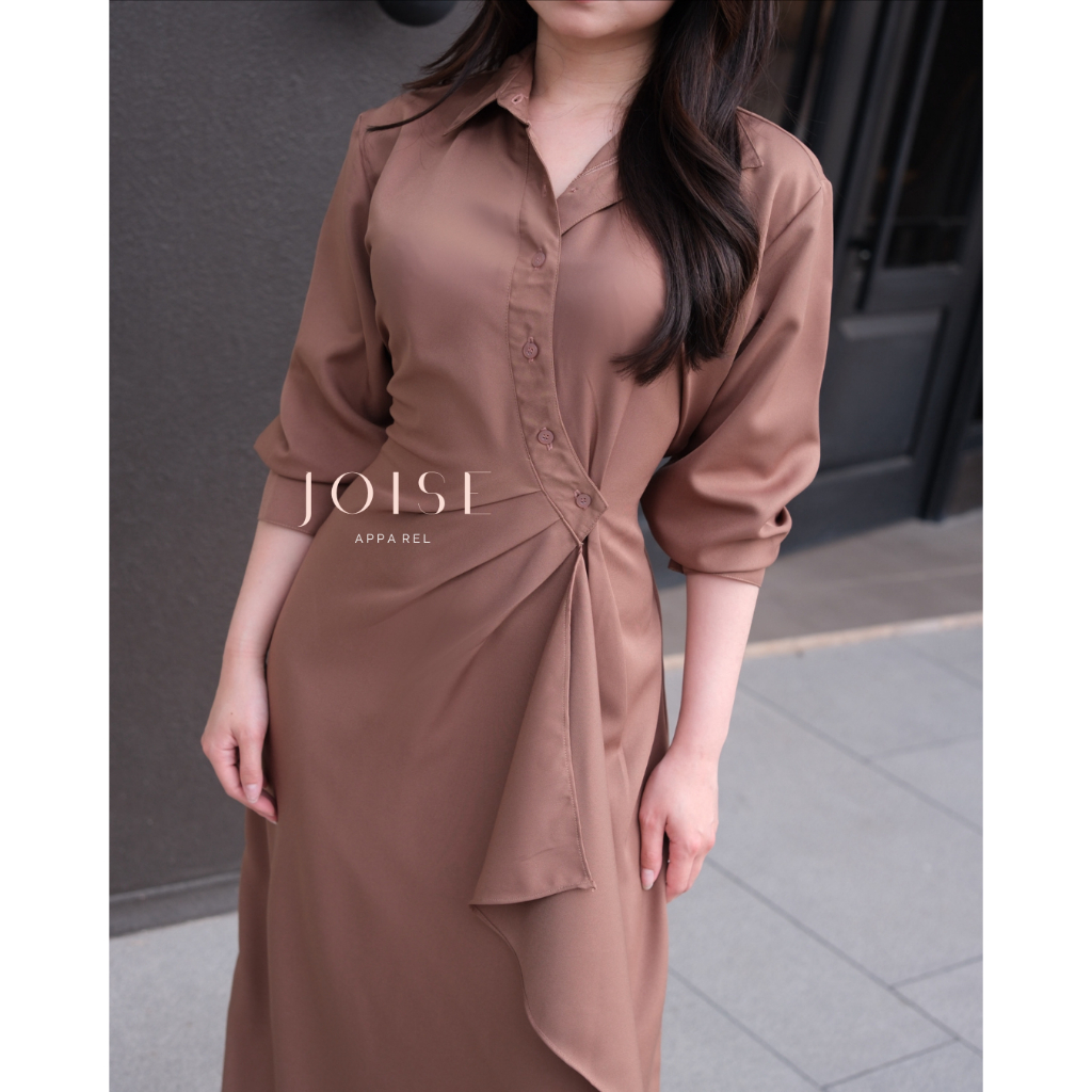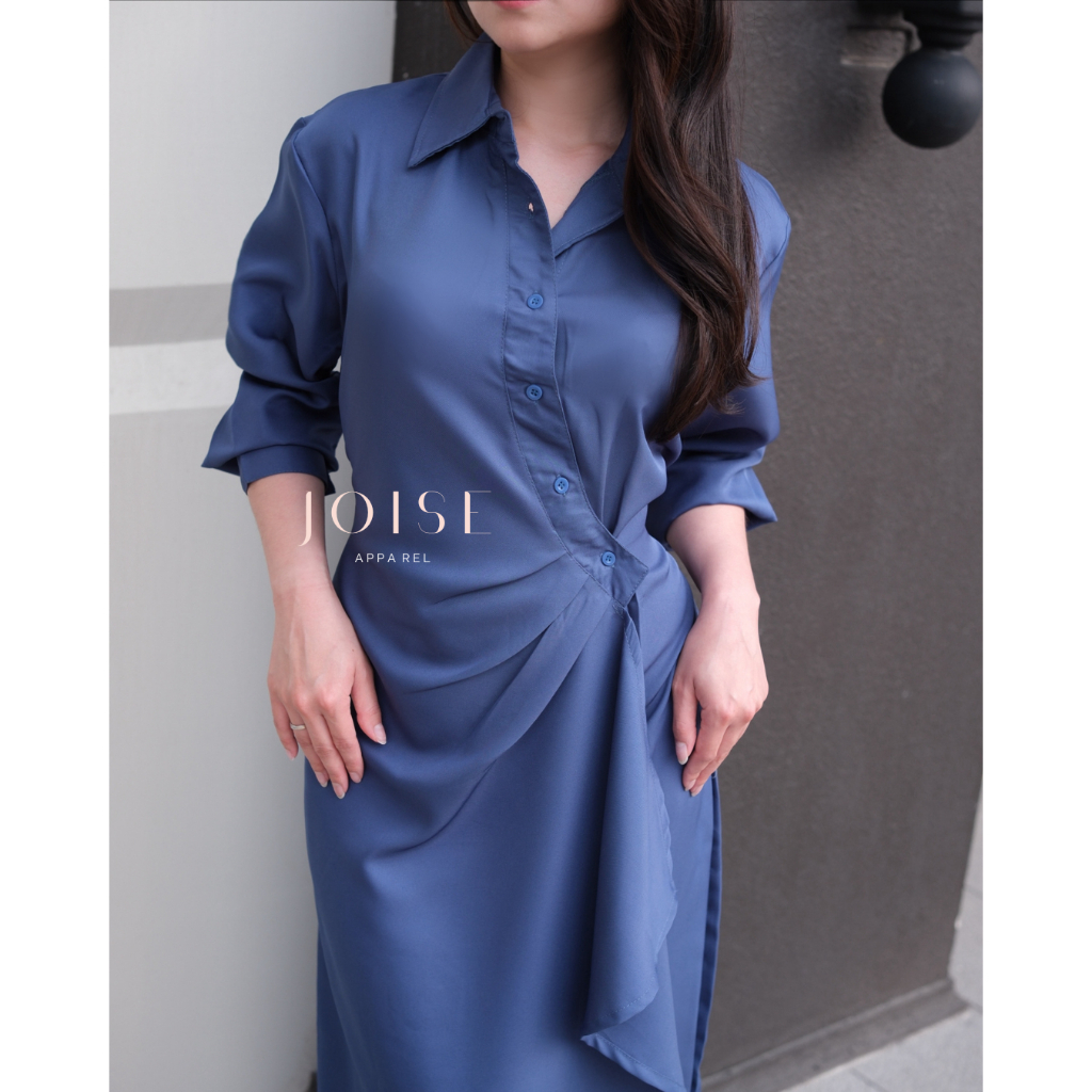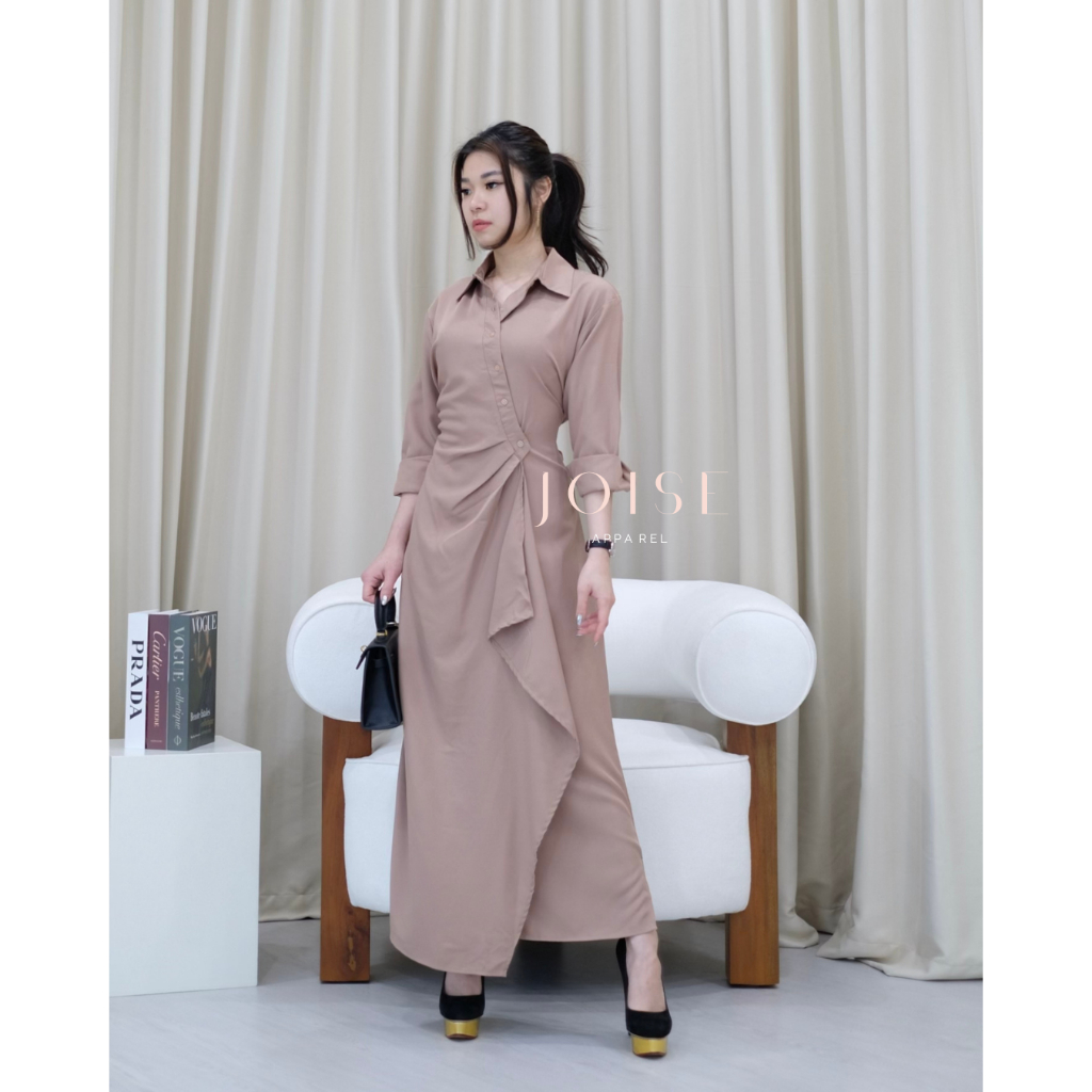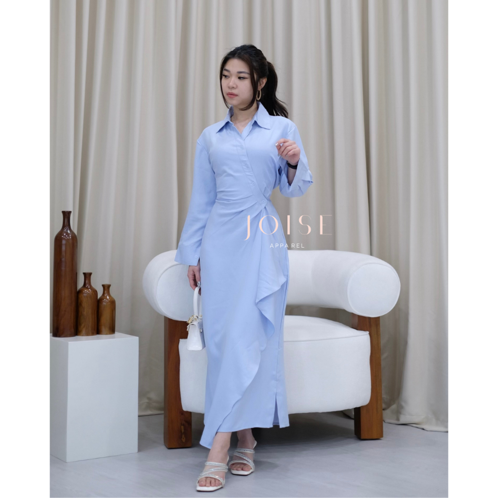 DRESS WANITA AURORA FLARE ASYMMETRIC LONG DRESS DRESS KANCING MAXI CASUAL POLOS TWILL BY JOISE DRESS WANITA KEKINIAN