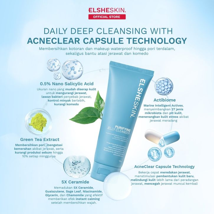 NEW LAUNCH ElsheSkin Purifying Jelly NEW LACleanser - 100ml Purifying and Gentle Facial Wash Sabun Cuci Muka Semua Kulit