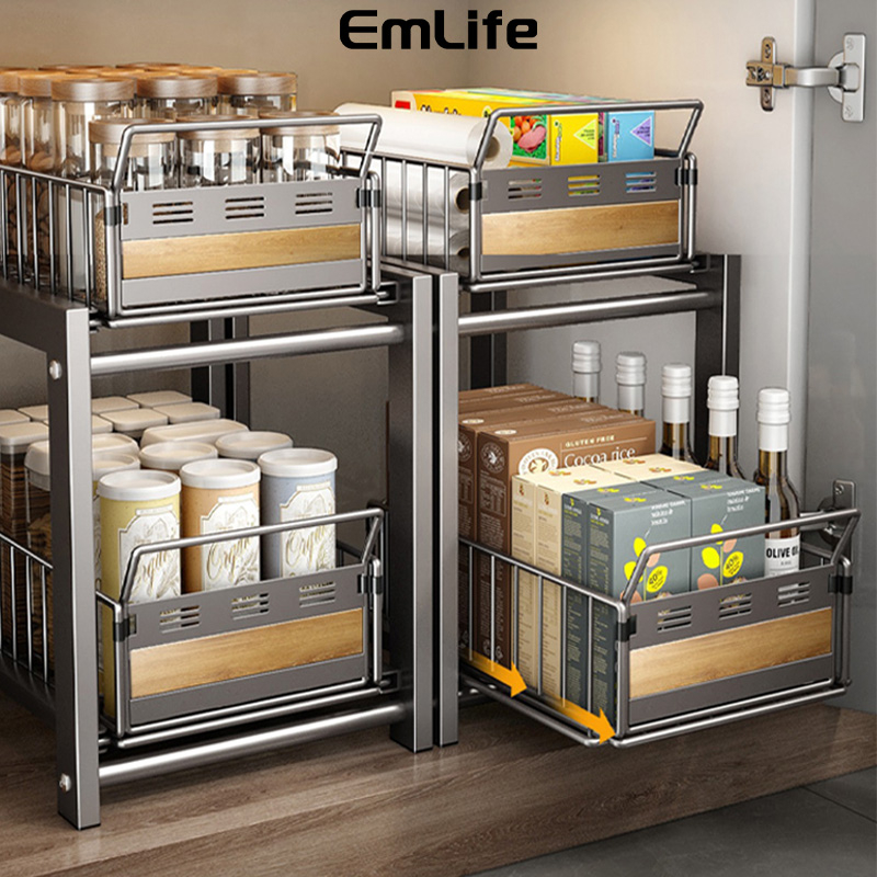 Rak Dapur Bawah Wastafel Rak Kabinet Lemari Dapur Keranjang Geser Laci Rak Tarik Rak