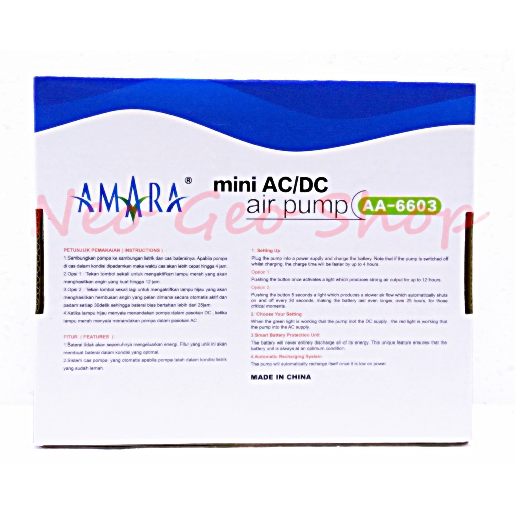 AMARA Mini AC DC AA 6603 AA6603 mesin Aerator pompa angin udara Airpump Aquarium Aerator