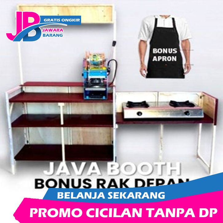 TERLARIS Booth Portable / Gerobak Lupat / Meja Lipat / Furniture Kayu / Bonus Rak Depan / Meja Kompor 2 Tungku / Apron
