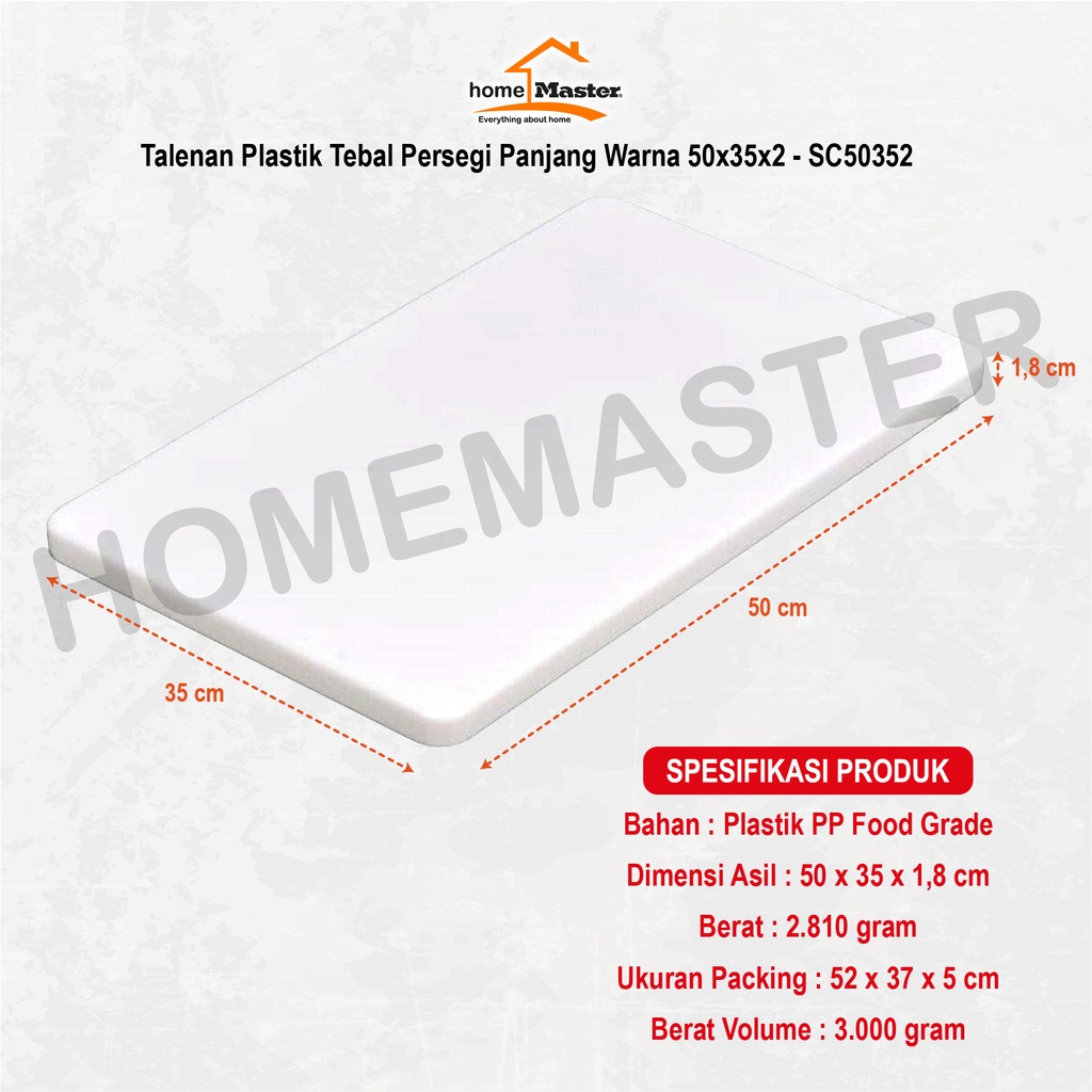 HomeMaster Talenan/Cutting Board Plastik/HDPE Warna Tebal 2 Cm 50x35x2 SC50352