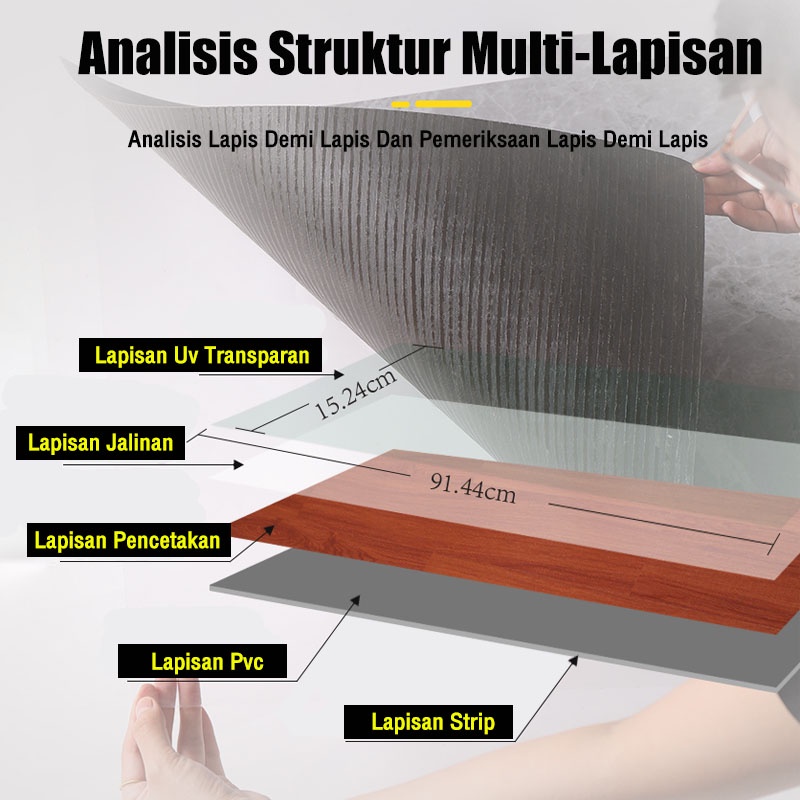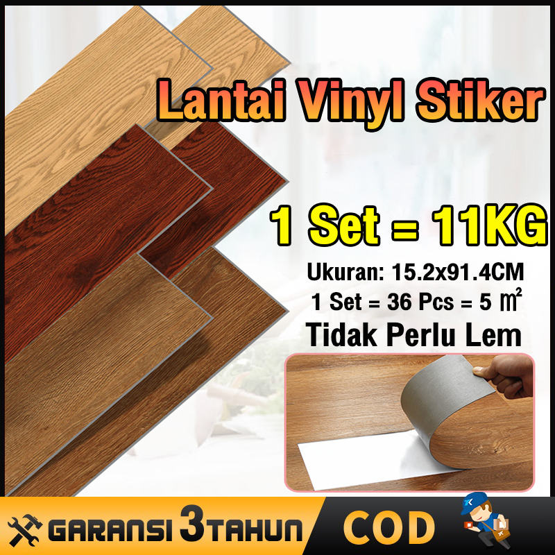 1 BOX (36 Pcs) Floor Vinyl Lantai Stiker / 91.5cm x 15,2cm / Lantai kayu parquet Dengan Lem / Sticker Vinyl