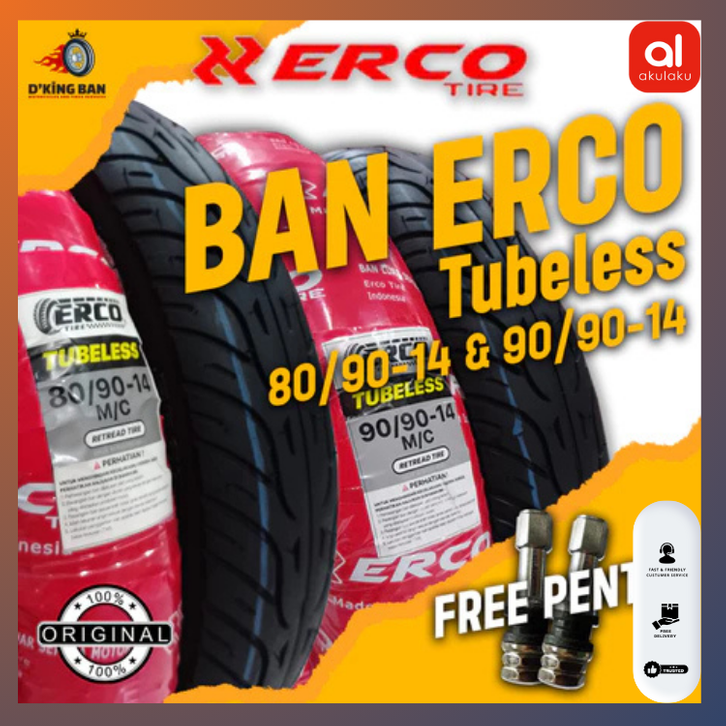 Ban Motor Erco Ban Motor Tubeless Ring 14 Ban Motor Sepasang Ban Motor Matic Tubelees Satu Paket Ukuran 80 90 14 90 90 1