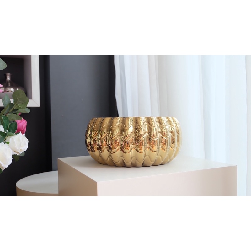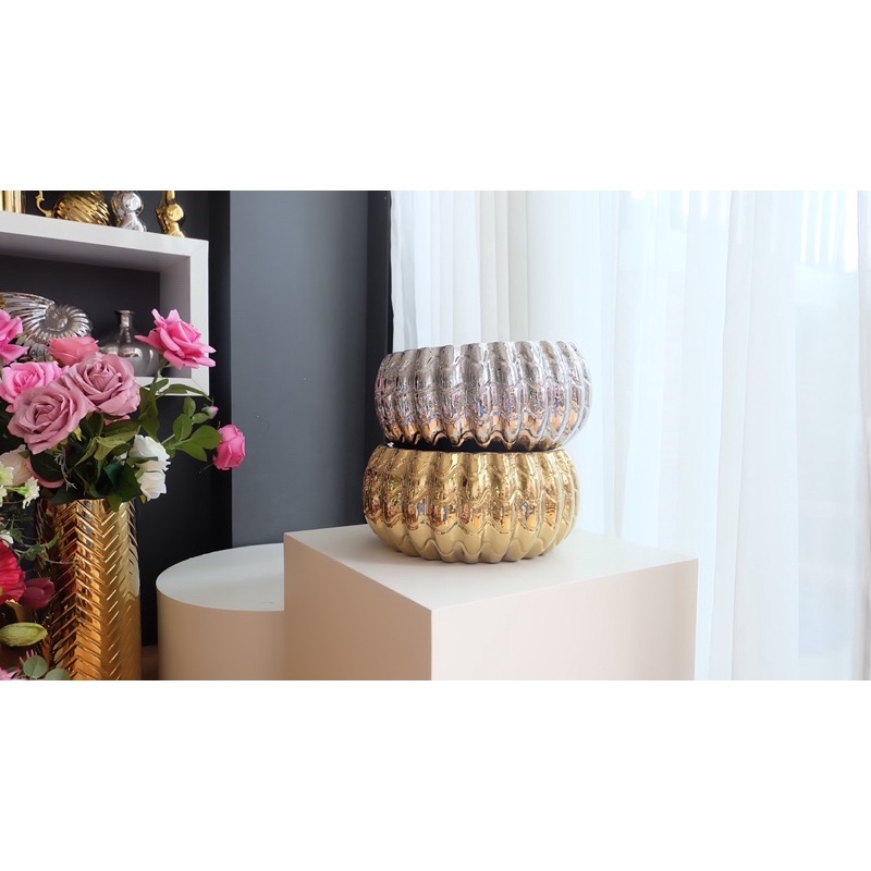 Vas Bunga Keramik Dekorasi Emas Gold / Silver / Putih - Colombia (Vas Anggrek)