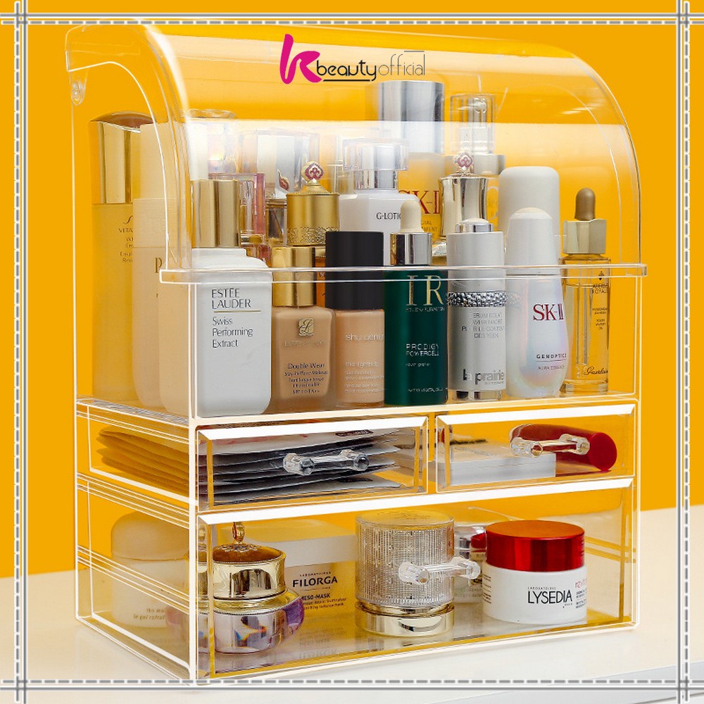 KB-K132 Rak Kosmetik Dengan Laci Anti Debu Tempat Make Up Skincare Rak Akrilik Multifungs