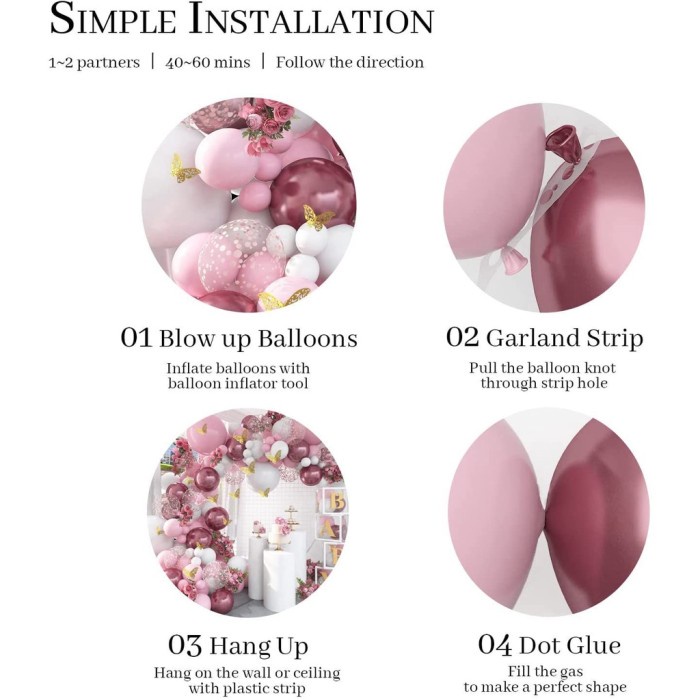 Balon Set Arch Anggur Merah Metalik Latex Balon Garland Balon Rantai Lem Lateks Pesta Ulang Tahun