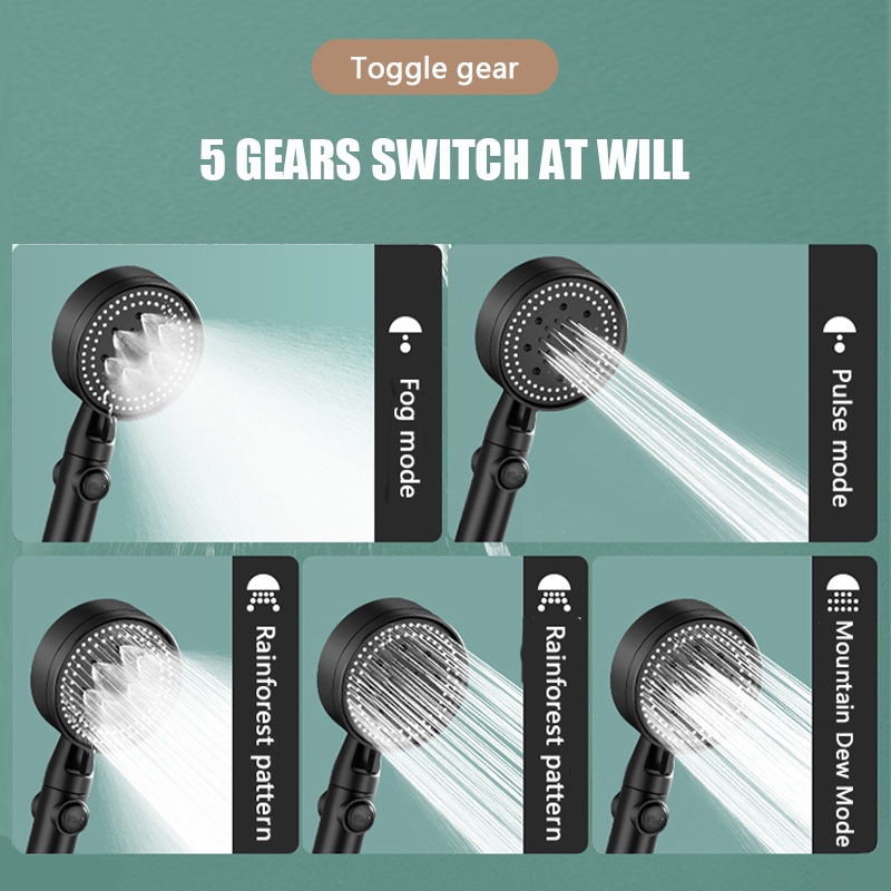3In 1 Kepala Shower Set Mandi Hitam Premium Shower Head Set 5 Mode Adjustable Shower Dengan Selang Portable Kamar Mandi
