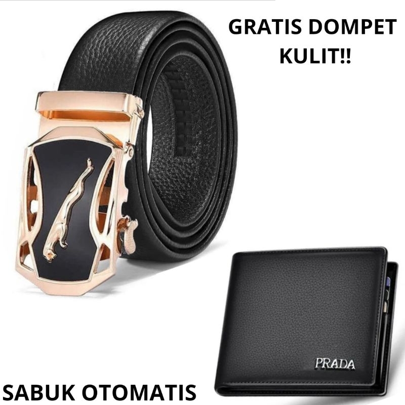 FREE DOMPET-sabuk kulit lapisan jaguar otomatis pria,ikat pinggang premium import kepala besi