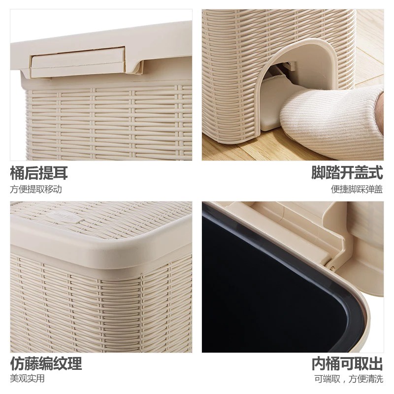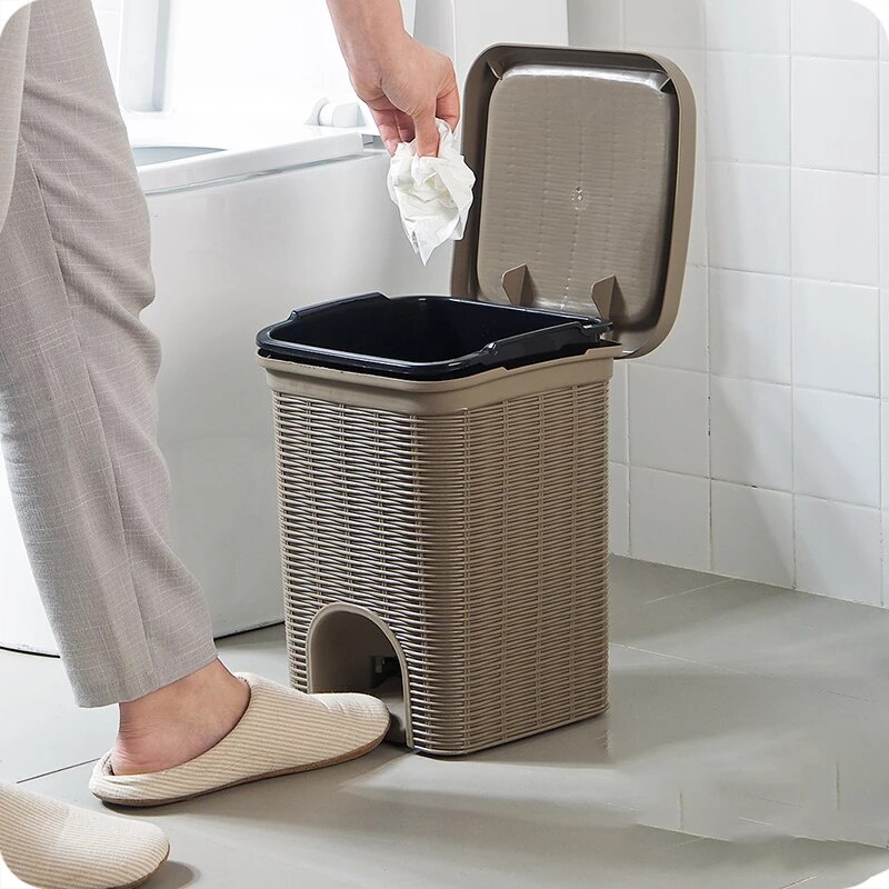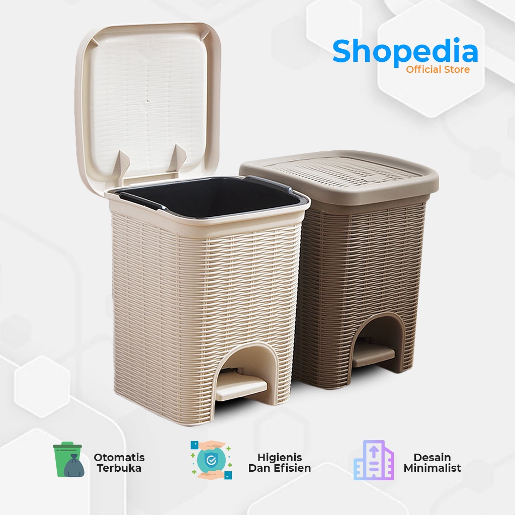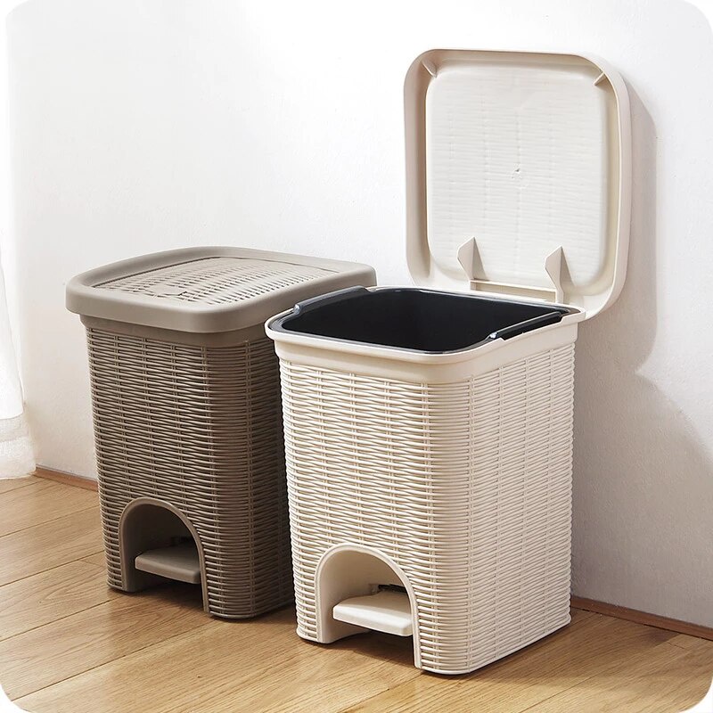 Tempat Sampah Injak Buka Otomatis Motif Rotan Anyam Estetik