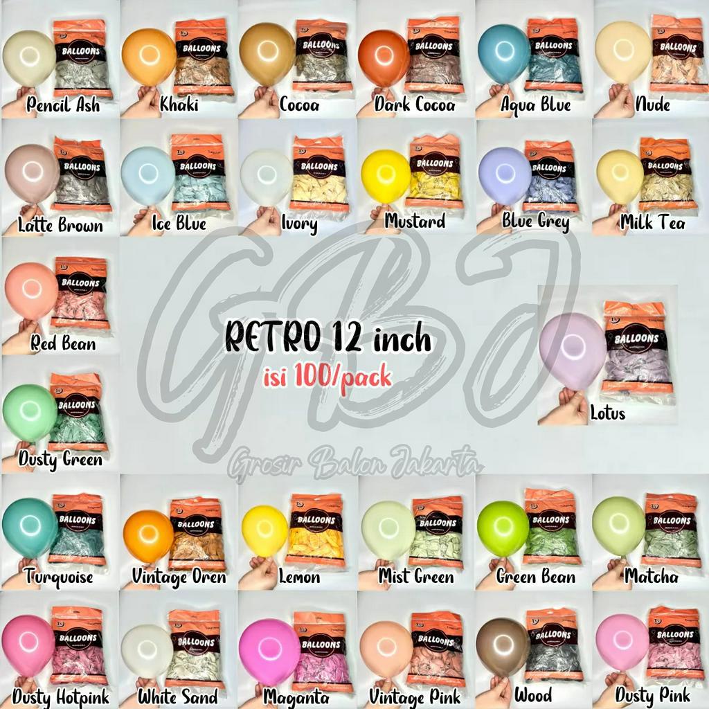 (GROSIR) Balon RETRO TEBAL Latex - 12 inch - isi 100pcs (2.8 gram) [Tongxuan]