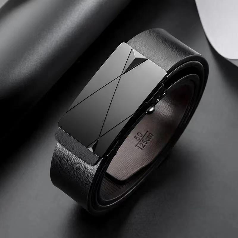 BGS-042 Sabuk Pria Ikat Pinggang Kulit Sapi 2 Lapisan, Gaya Fashion, Gesper Otomatis, Belt Pria