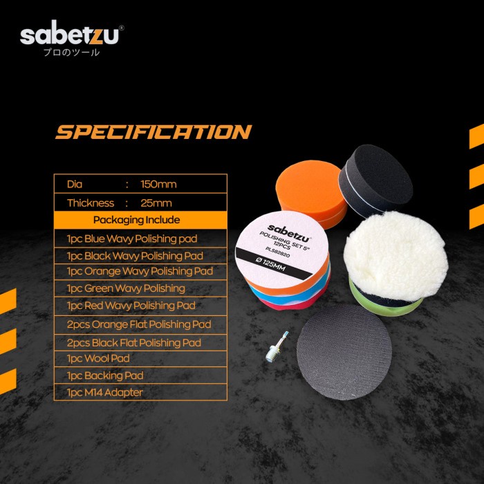 Busa poles set 12pcs 5 inch sabetzu sponge polishing set spon pad 5" polishing set sponge wool 12 pcs 5"