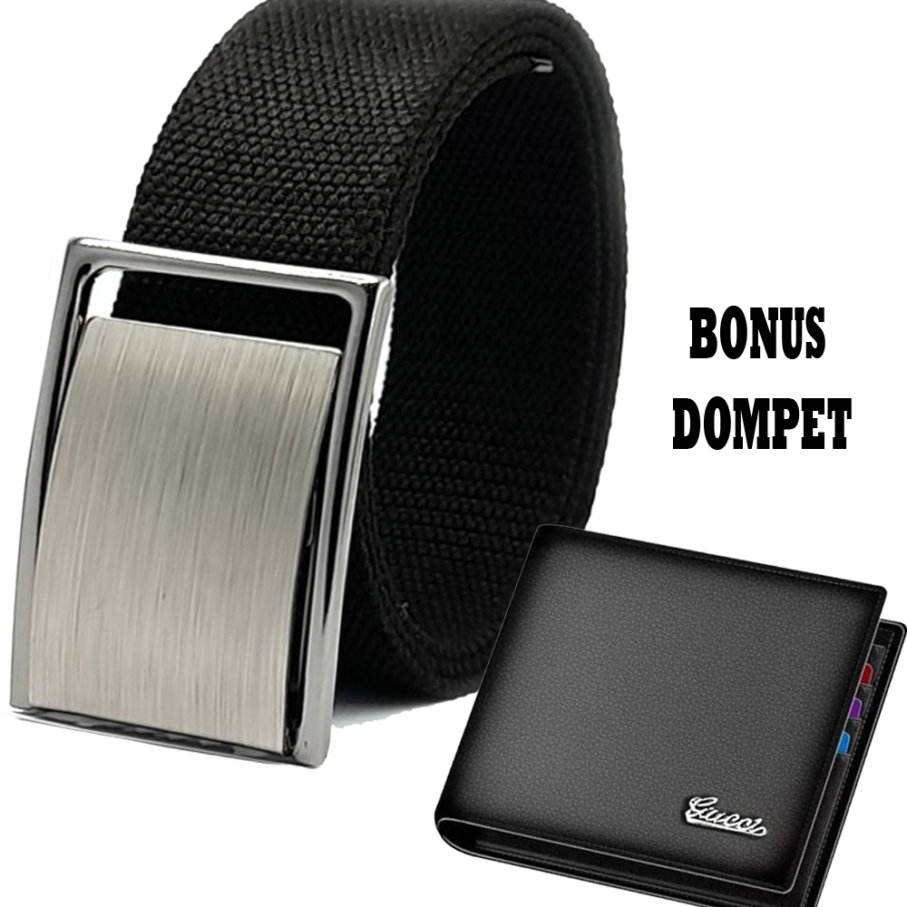BONUS DOMPET KULIT Gesper Ikat Pinggang Katun tebal model silet Formal Pria dan Wanita Gesper