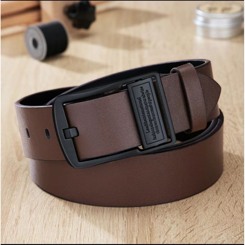 Sabuk kulit sapi asli sapi 2 lapisan korea fashion, Gaya kancing pin klasik , Ikat Pinggang pria belt