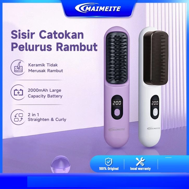 MAIMEITE CATOK SISIR PELURUS RAMBUT / CATOKAN SISIR LURUS DAN KERITING LISTRIK / HAIR STRAIGHTENER CURLER 2 IN 1