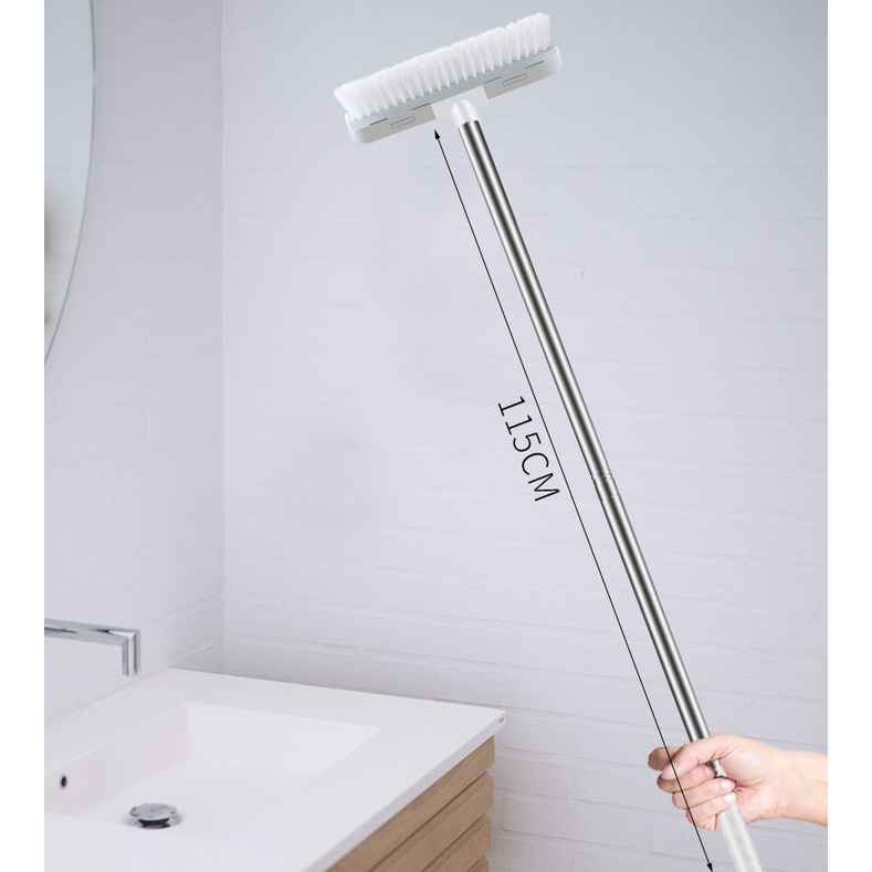 YHOME Sikat Lantai Kamar Mandi Pembersih Dinding WC Wiper Dorong Serokan Air Gagang Panjang 115cm 2 In 1/ Sikat WC Denga