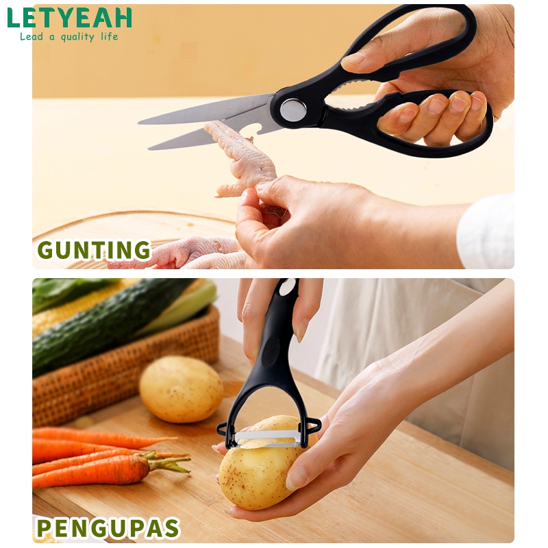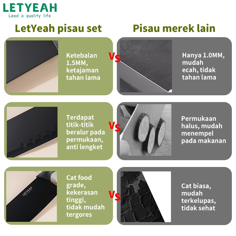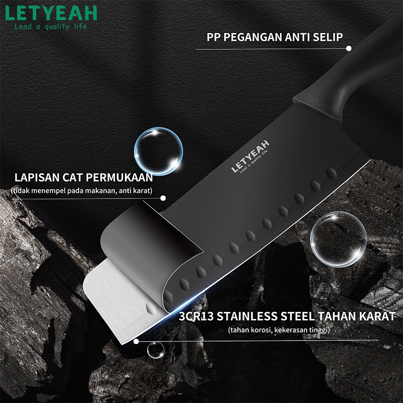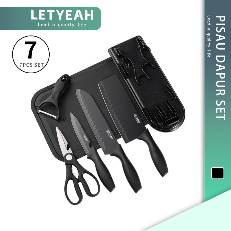LetYeah Pisau Dapur Set isi 7pcs/Kitchen Knife Set Hitam