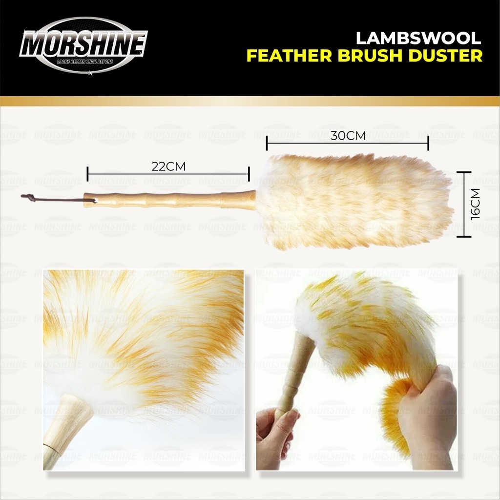 MORSHINE Kemoceng Bulu Domba Gagang Kayu / Lambs Wool Duster Wooden Handle Auto Detailing / Perawatan Kendaraan Anti Deb