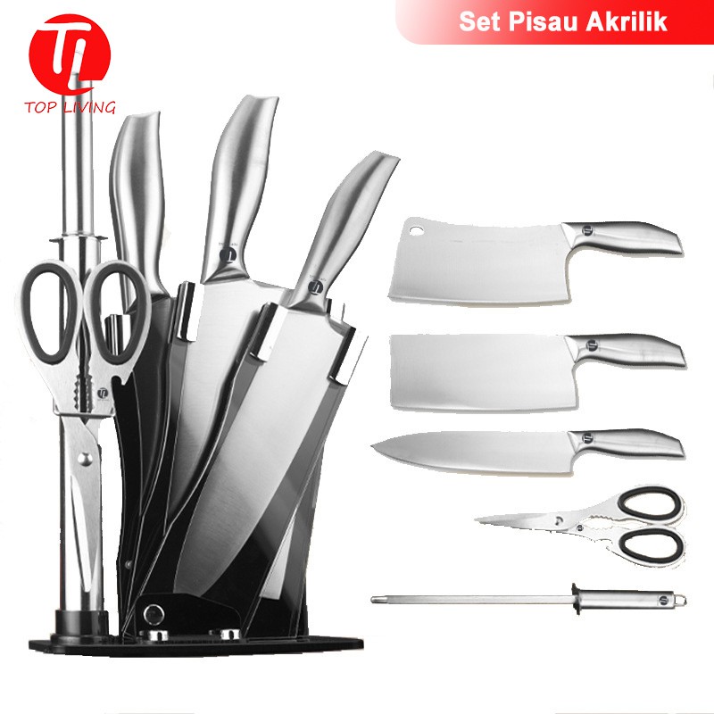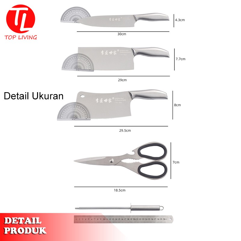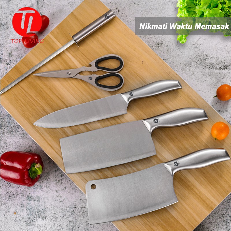 Top Living Pisau Dapur Super Tajam 6 Set / Pisau Dapur Stainless Steel / Pisau Daging Super Tajam Import Premium