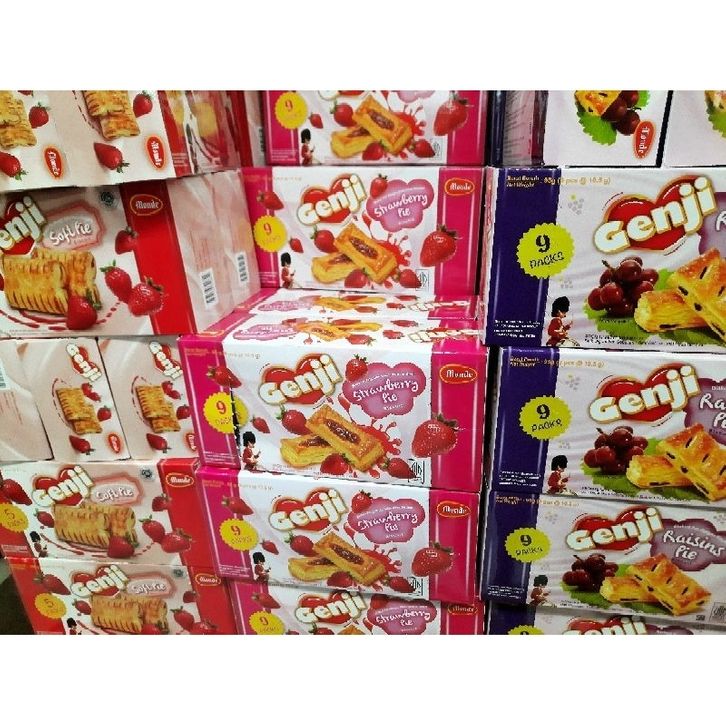 Camilan Makanan Ringan Snack Monde Genji 95 Gr Box Varian Raisin Pie, Strawberry pie, Soft Pie Strawberry