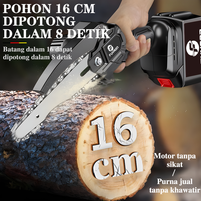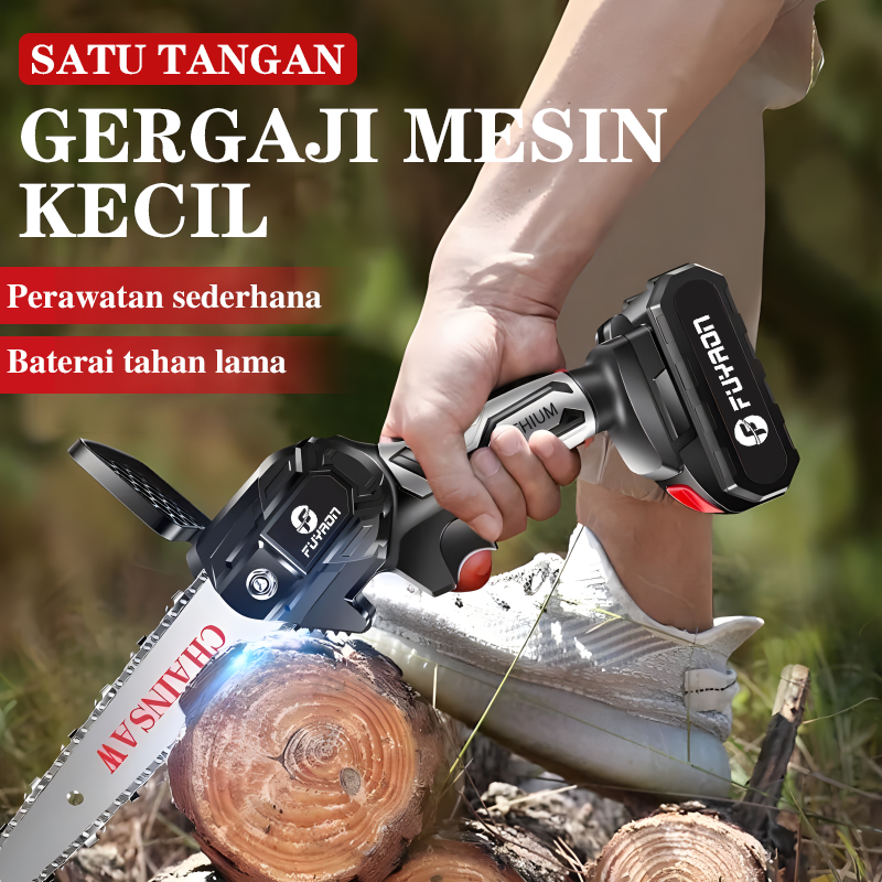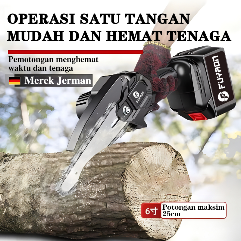 FUYAON Mesin Chainsaw 6 Inch Cordless Chainsaw 36V Gergaji Baterai Gergaji Rantai Elektrik Mini 2 baterai Gergaji Listri